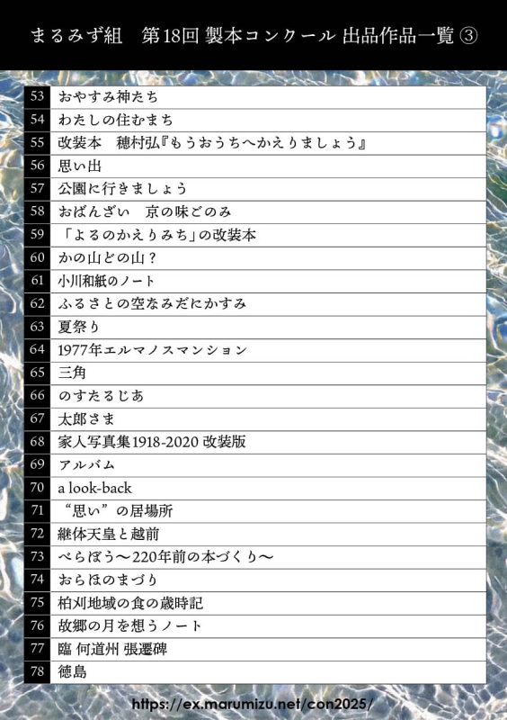 con2025List03 執筆者 marumizuadmin | 7月 26, 2025 | コメント0件 コメントを送信 コメントをキャンセルメールアドレスが公開されることはありません。 ※ が付いている欄は必須項目ですコメント ※ 名前 ※ メール ※ サイト 次回のコメントで使用するためブラウザーに自分の名前、メールアドレス、サイトを保存する。