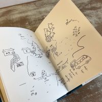 故郷の思い出は沢山あり過ぎて、今回はひとつに絞って紹介します。続きも書けたら楽しそうという希望も込めて、遊び紙に故郷の村の様子のイラストを入れました。