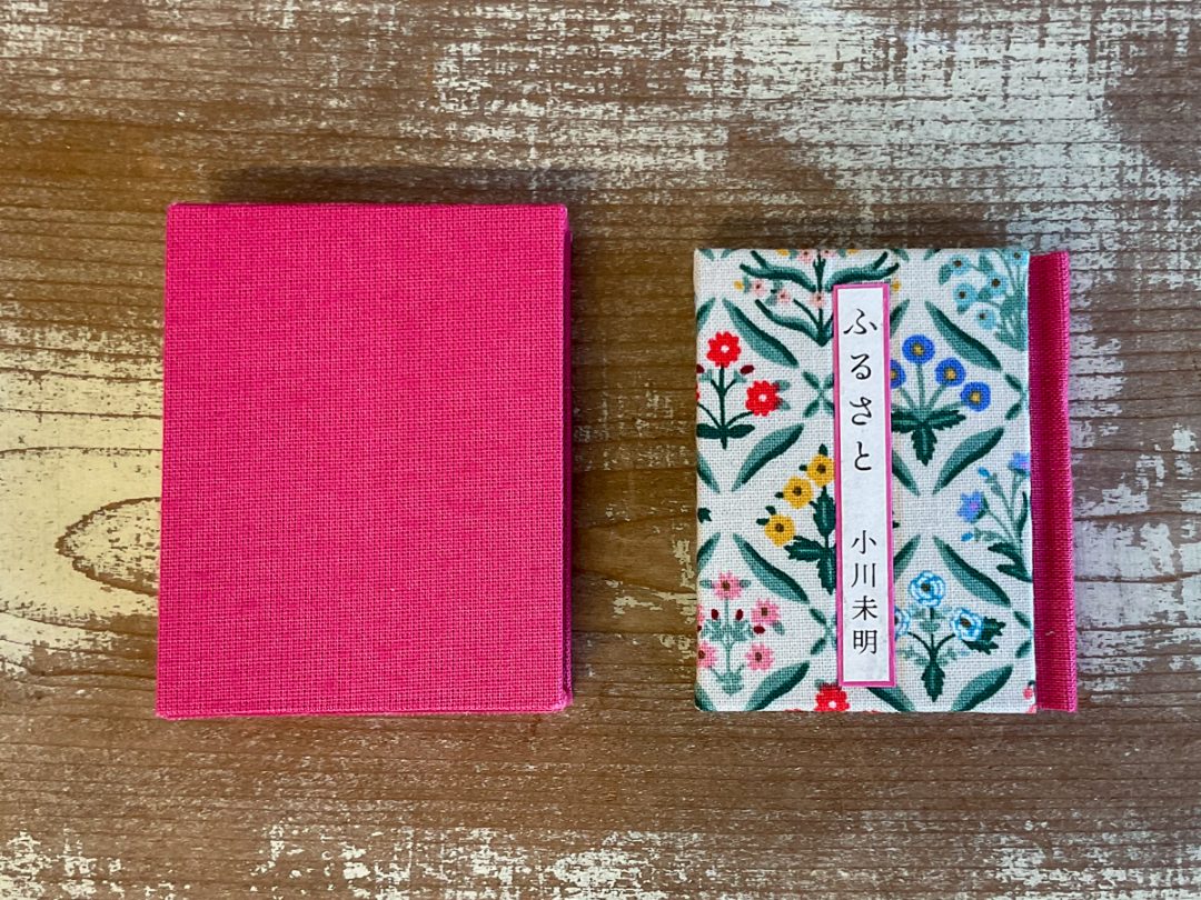 背とスリップケースは教室で購入したクロス紙を使用した。小鳥が別人見えないようにするのに苦労した。