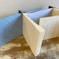 材料は表紙/見返し/本文用紙/かがり糸の順です。表紙のボール紙は厚さ2mm。