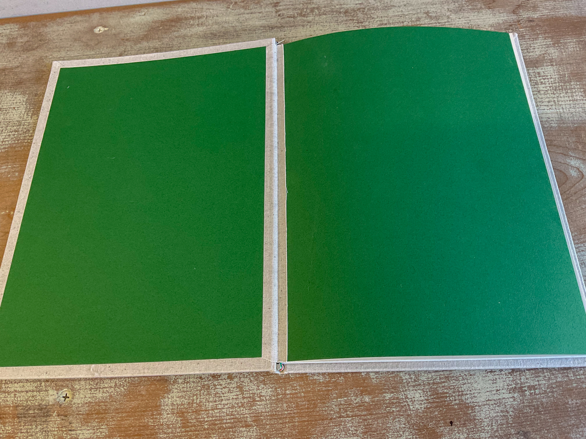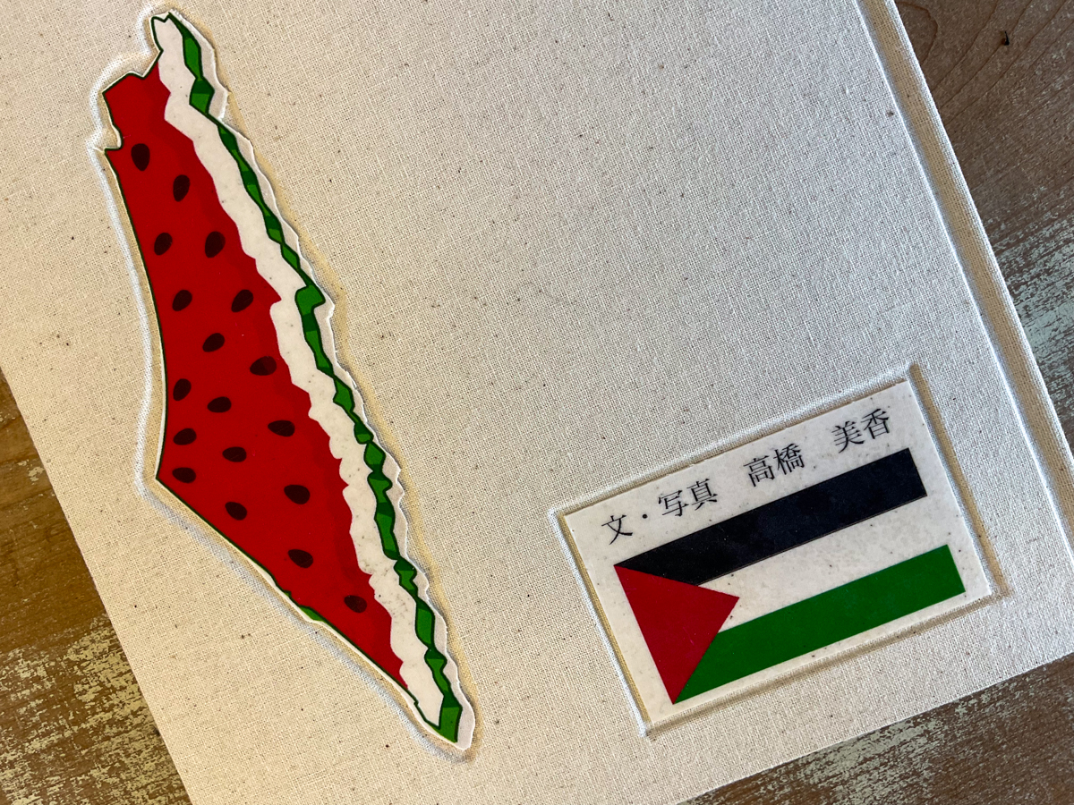 花布を角背の本にはやった事がなかったのですが、パレスチナ国旗の4色を使い少しサイズが大きくなってしまったと思っています。
