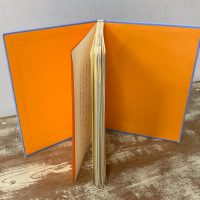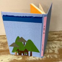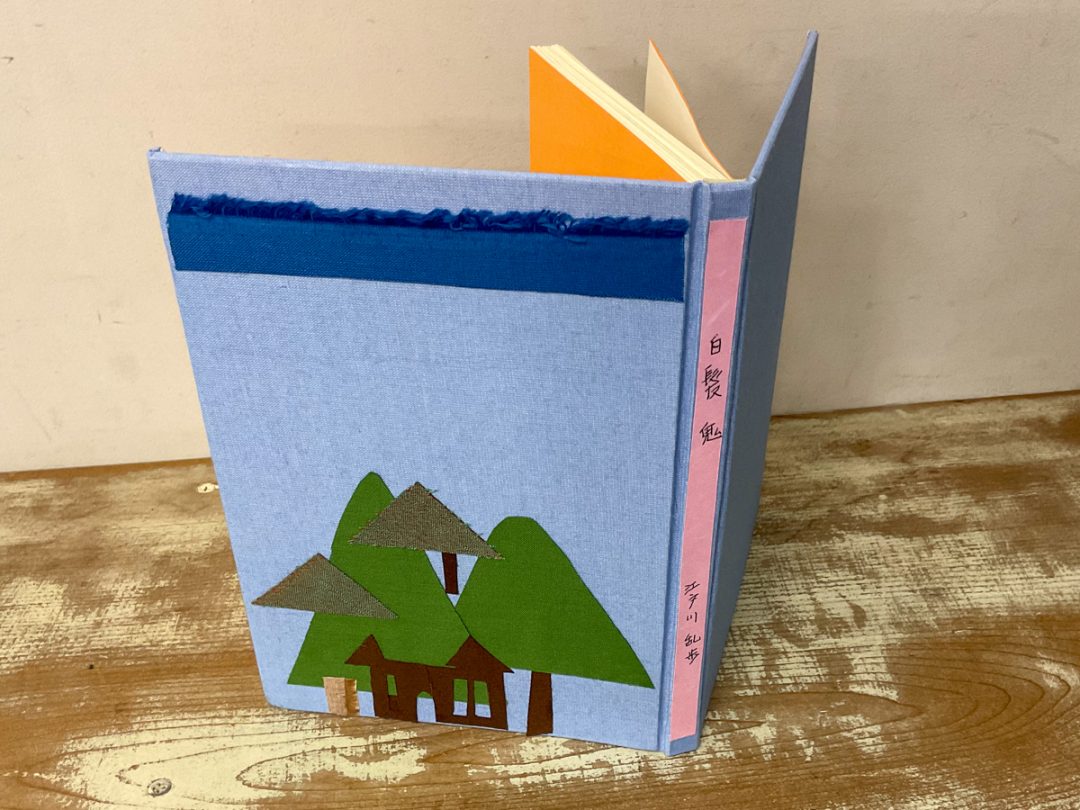 今回はとにかく、丁寧に作るつもりで、作りました。表紙は、空を表すことに、水色のクロスをつかいました。ページ数も多くて、今までの製本の作成の中では、一番の多さになりました。