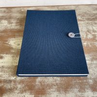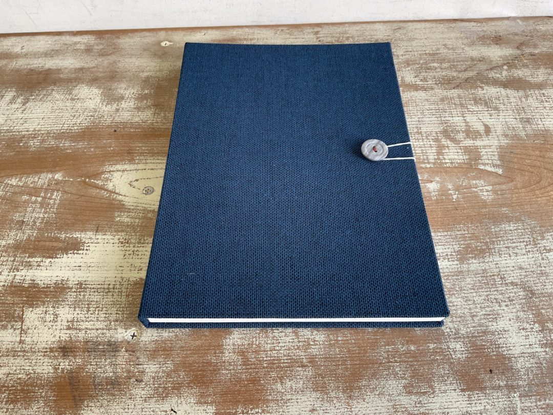 本文:タント 100kg、見返し:マーメイド 110kg、表紙:2mmボール、織りクロス、その他:ボタン、ゴム紐、麻糸、水彩紙(特厚口)