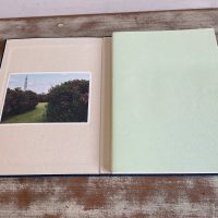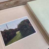 故郷の風景のスケッチや撮った写真を貼れるようなスケッチブックを制作しました。表紙の裏に使用した写真は6年前の台風で流される前に撮影した地元の川沿いの植物達です。そのような恒久的でないものをスケッチブックに写していけるようにと、この写真を使用しました。