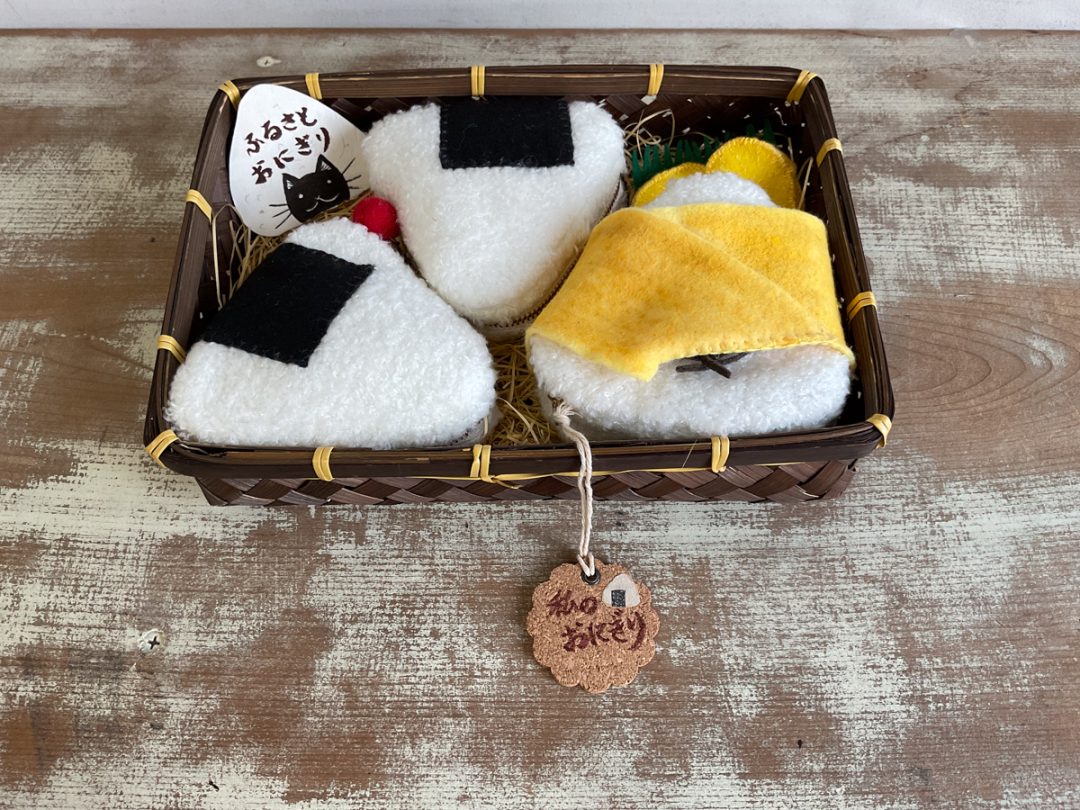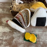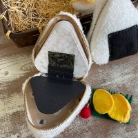 (株)アイアップ『おにぎりトランプ日本全国版』を本に改装し、ふわふわのおにぎりポーチに仕立てました。