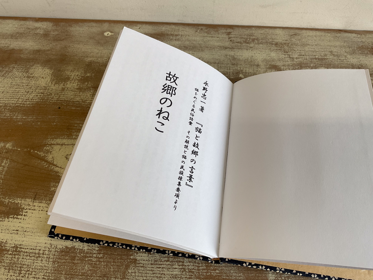 猫に関する研究者、永野忠一氏が、特に故郷のねこに関して論じた本を引用し、イラストを添えて本に仕立てました。