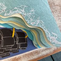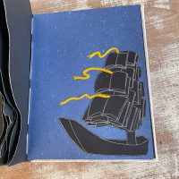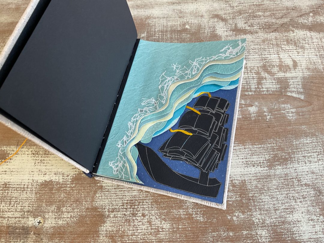 「故郷」とは、「何かあったときに立ち返る場所」と解釈し、知の糧となる本を帆に見立てて作成しました。