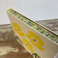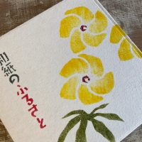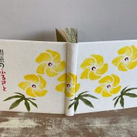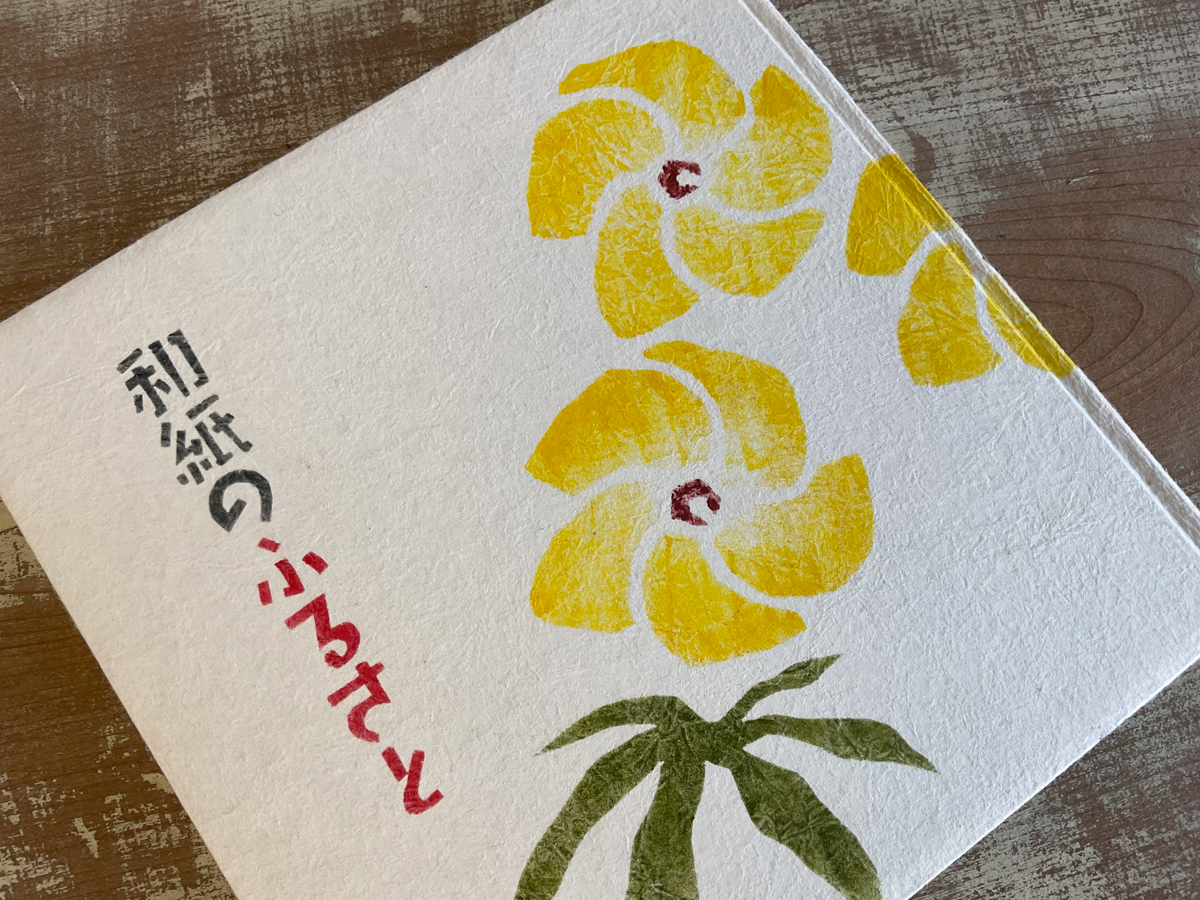 和紙の本ということで表紙には和紙を使い、黄蜀葵(とろろあおい)の花を型染め(もどき)で入れてみました。