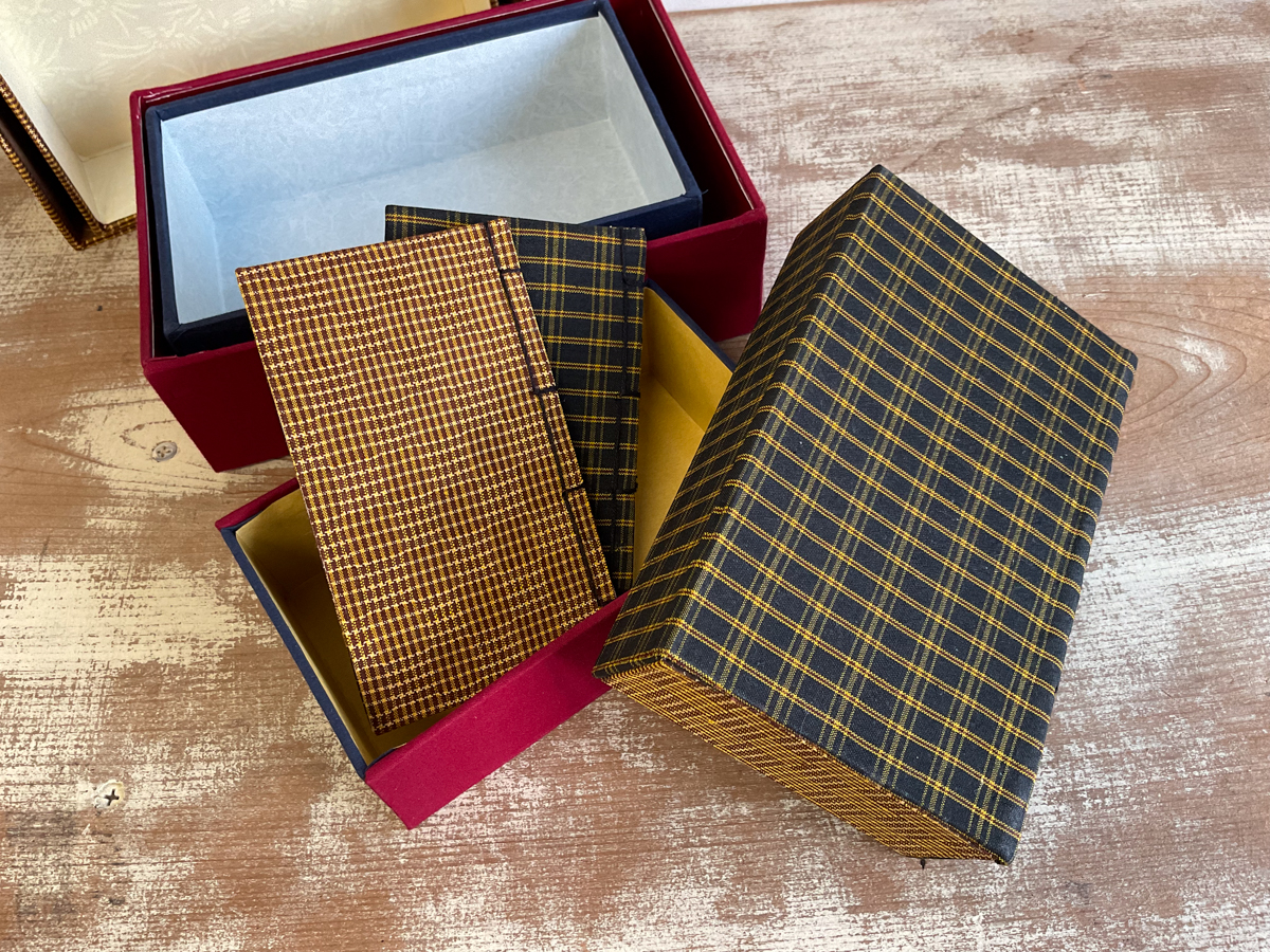 故郷を感じられる物、黄八丈の着物のはぎれで身近に置いておける箱を作りました。