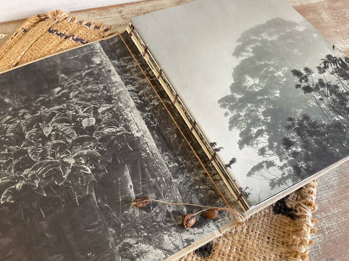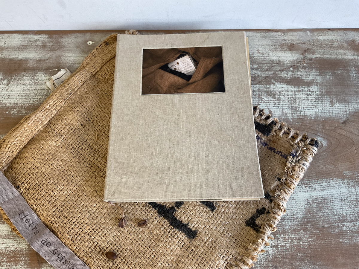 また、日本でパナマゲイシャを輸入しているコーヒー店で使用している麻布をリフォームして写真集のケース(袋)を作りました。