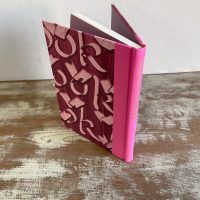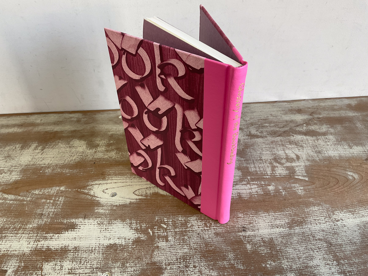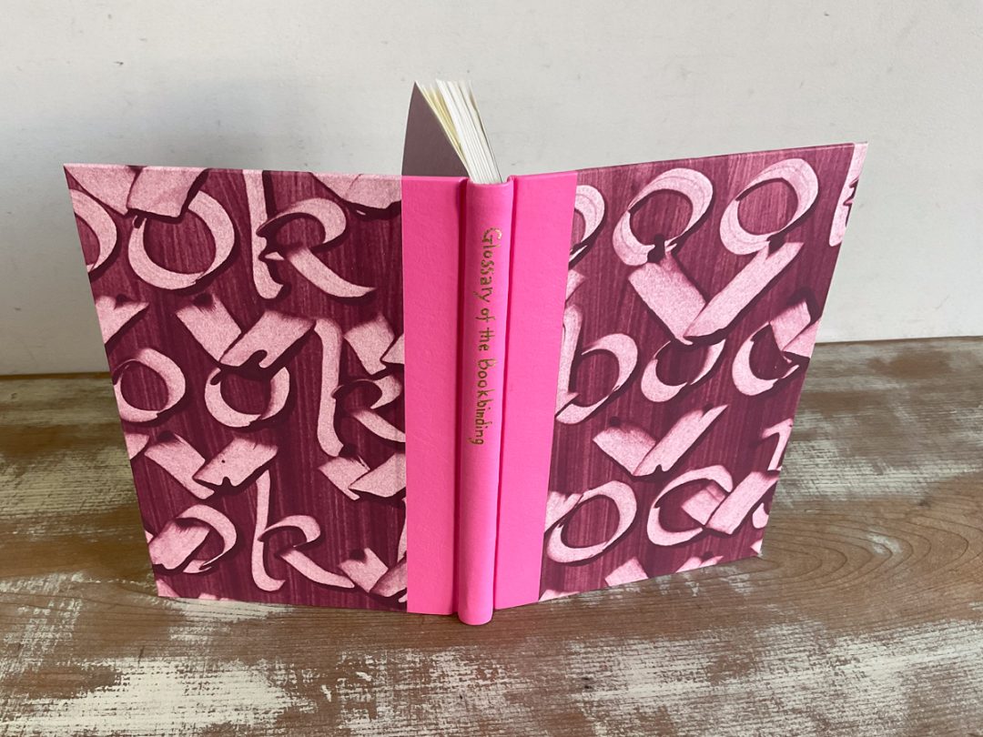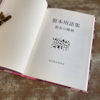 東京製本倶楽部が販売していた『製本用語集』、中綴じだったものと、改訂新版として未綴じの折丁をまとめて製本しました。丸背の革継ぎ上製本です。表紙に使った紙はペーストペーパーです。