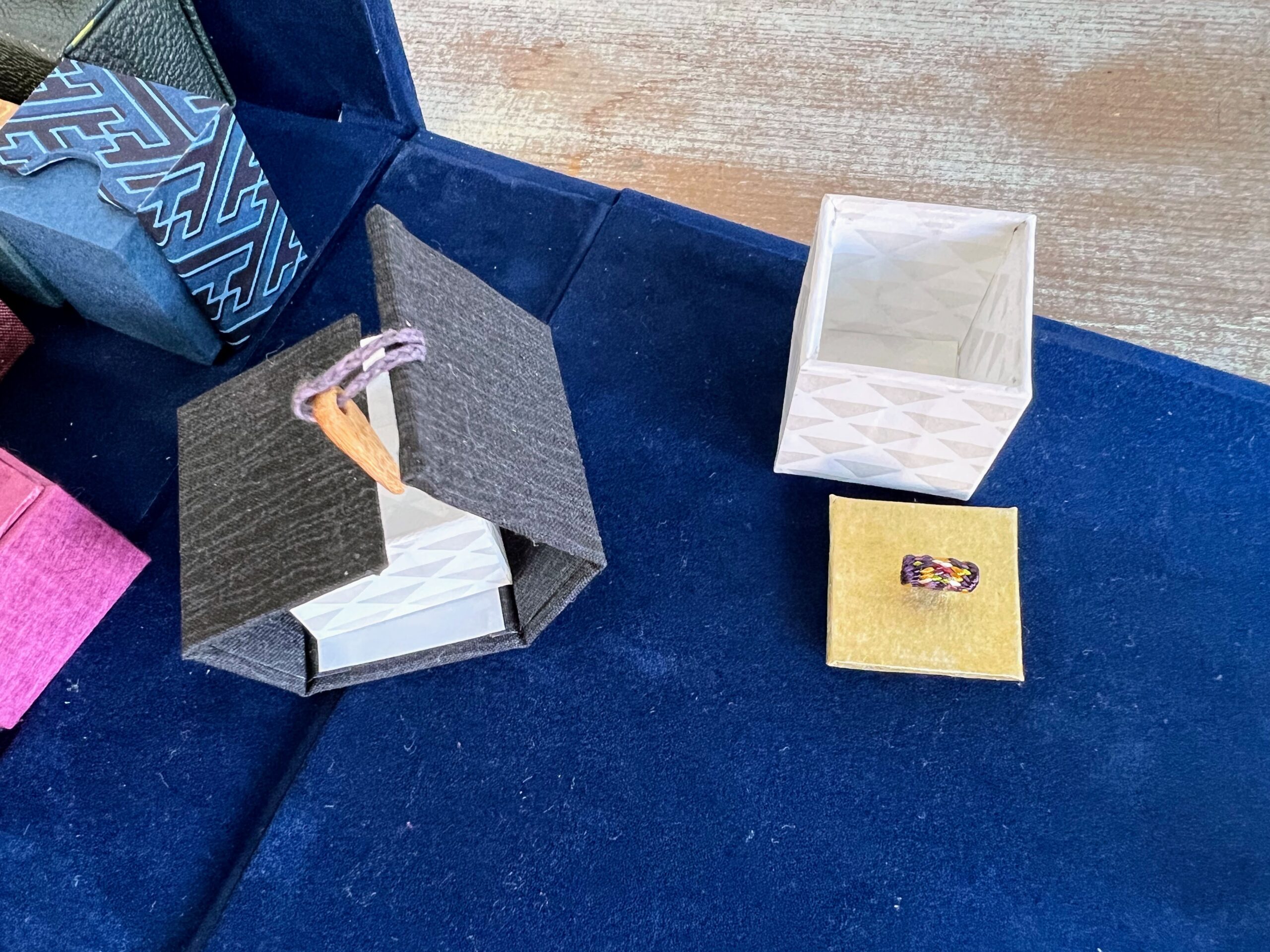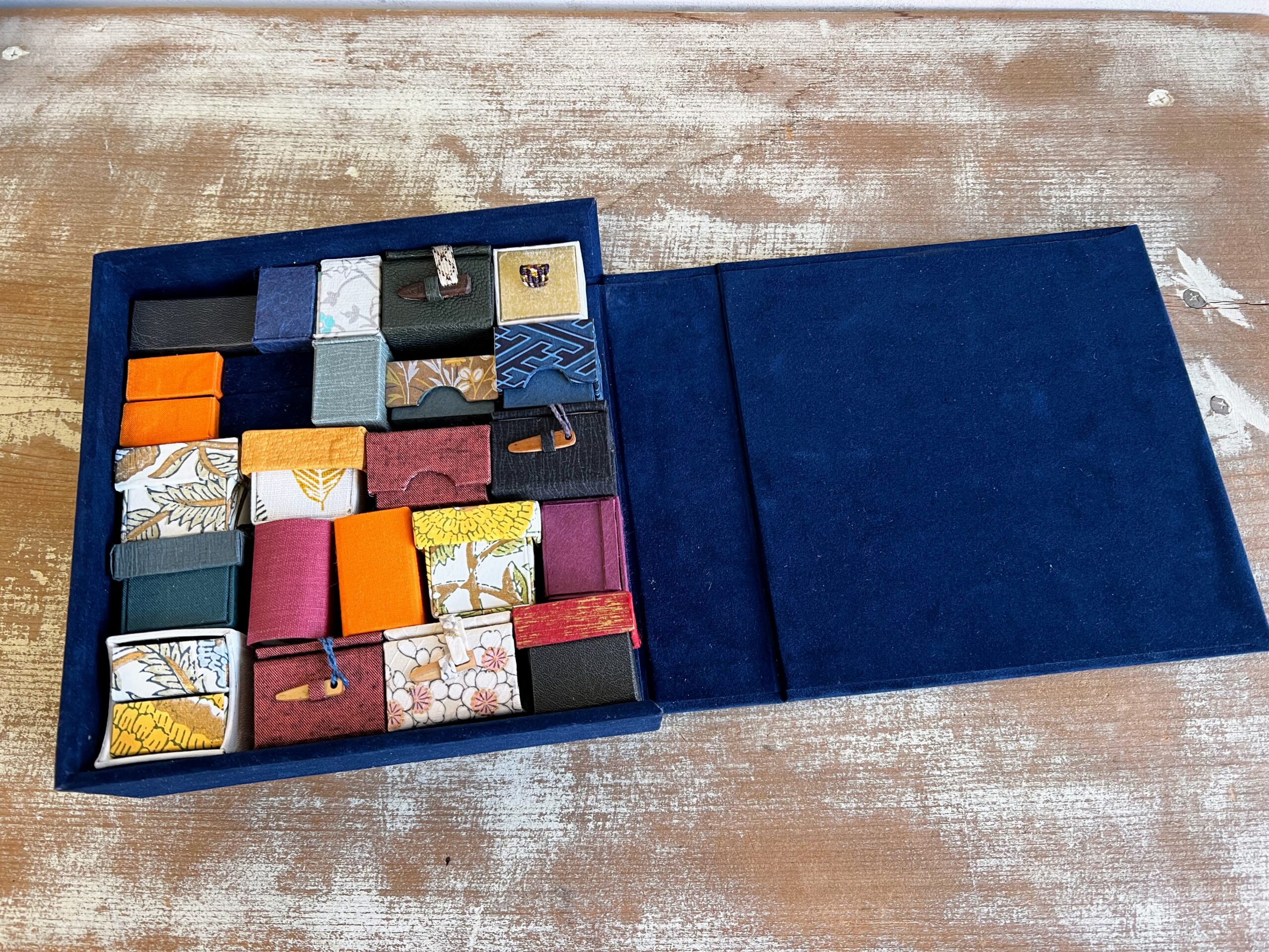 [材料]和紙、千代紙、ロクタ紙、製本クロス、革(山羊)、紐( 真田紐、和紙)